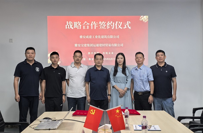 近日,雅安成建工業(yè)化建筑有限公司(以下簡稱成建工業(yè)化公司)與雅安交建集團運通建材貿(mào)易有限公司(以下簡稱交建運通建材公司)在雅安市經(jīng)開區(qū)正式簽署戰(zhàn)略合作協(xié)議。雙方將秉持“優(yōu)勢互補、資源共享、互利共贏、長期發(fā)展”的原則,在建筑材料銷售、非金屬礦物制品制造等領域深化合作,共同推動區(qū)域建材產(chǎn)業(yè)高質(zhì)量發(fā)展。