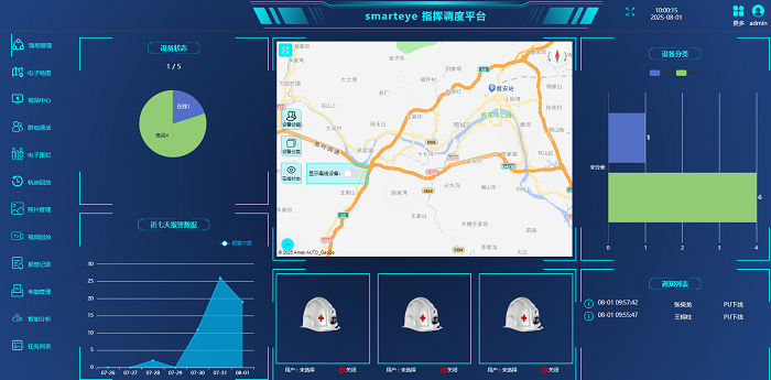 本次投用的智能安全帽集多項(xiàng)前沿功能于一體,實(shí)現(xiàn)安全管理智能化升級。一是實(shí)時動態(tài)監(jiān)控,通過高清視頻與語音對講,管理人員可遠(yuǎn)程掌握現(xiàn)場實(shí)況,提升監(jiān)管效率。二是精準(zhǔn)軌跡追溯, 依托GPS定位與軌跡回放功能,可精確追蹤人員位置及移動路徑,優(yōu)化調(diào)度與應(yīng)急響應(yīng)。三是多重智能預(yù)警, 集成靜默、撞擊、脫帽、高溫報警及緊急求助功能,結(jié)合定位與傳感技術(shù),遇險情將自動觸發(fā)預(yù)警,全方位保障人員安全。四是智能考勤分析,可基于定位技術(shù)實(shí)現(xiàn)精準(zhǔn)考勤,為人員管理和優(yōu)化提供數(shù)據(jù)支撐。